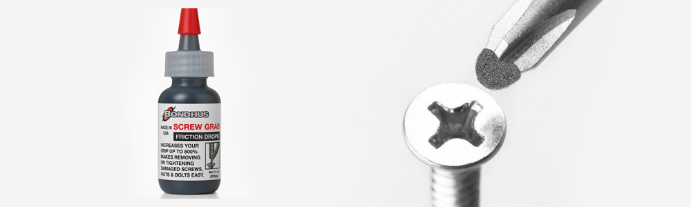 Werkt het elastiek niet, dan stap je over op schroefgrip. Schroefgrip is een smeerbaar middel, dat, zoals de naam al een beetje verklapt, zorgt voor meer grip op de schroef. Het is een diamantpasta, die je op de kop van de schroef smeert. De diamantpasta heeft een speciale structuur, waardoor je al snel grip krijgt op de schroefkop en waardoor je de schroef snel een eenvoudig los kunt draaien. Omdat het gaat om een smeerbaar middel, weet je zeker dat de pasta het restant van de aandrijving volledig omvat en vult, waardoor je de schroef met een schroefbit of schroevendraaier goed los kunt draaien. Schroefgrip biedt al snel tot wel 800% meer grip en er komt geen wachttijd bij kijken. Doe een druppeltje op de schroefbit of schroevendraaier, druk hem in de schroefkop en draai de schroef los.