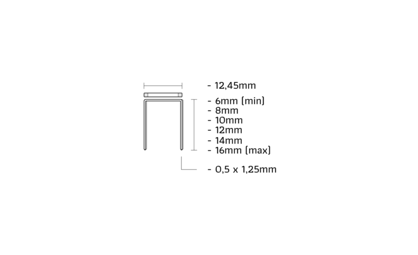 Deze Union D-08 RVS – 5000 stuks zijn gemaakt van roestvast staal. Dat is staal met een speciale legering, waardoor het materiaal zeer sterk is en een uitstekende corrosiebestendigheid heeft. Hierdoor zijn de nieten ook prima buitenshuis te gebruiken of bijvoorbeeld in vochtige binnenruimtes. De 5000 stuks Union D-08 RVS nieten hebben een dikte van 0,5mm en een rug breedte van 12,45mm.